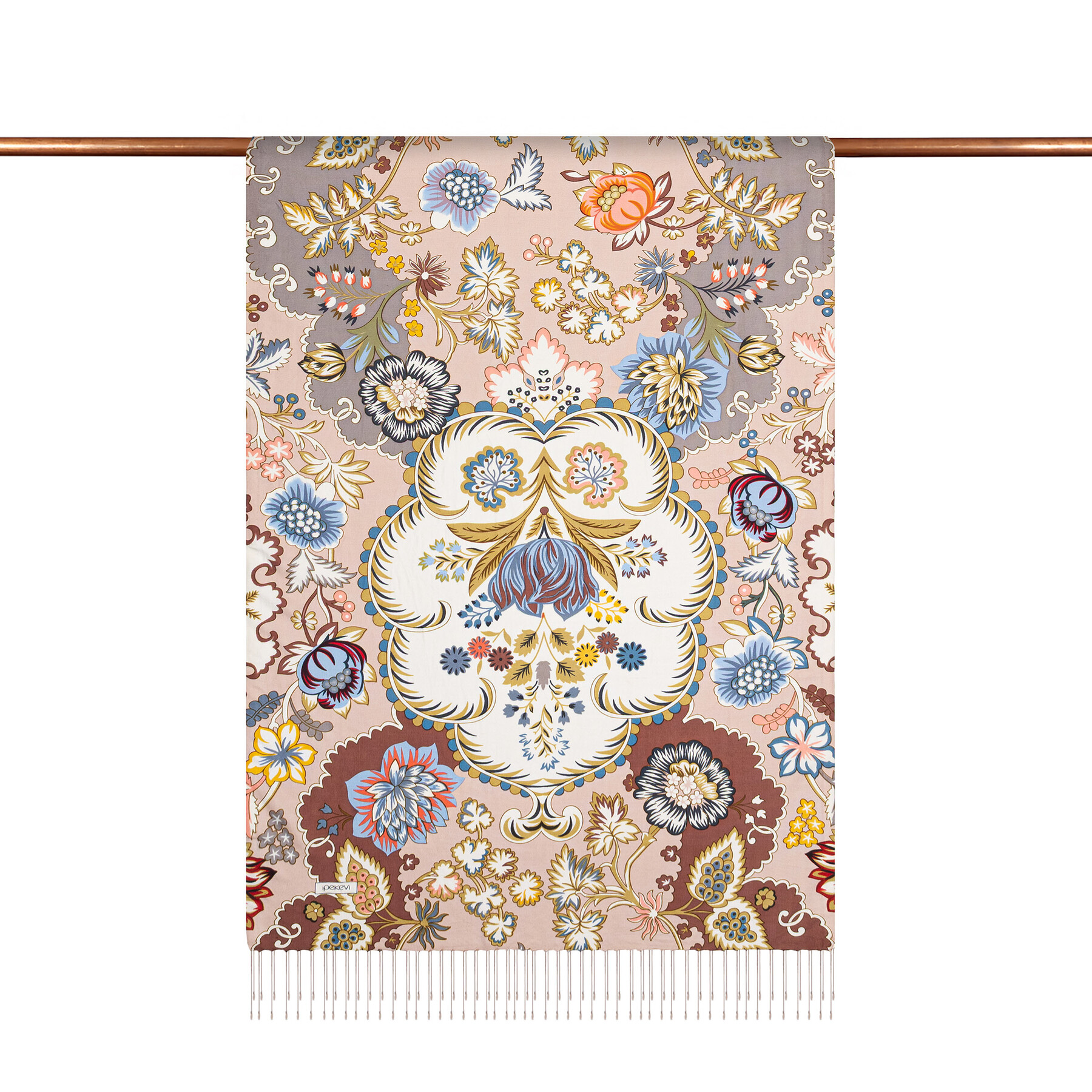 Puslu Pembe Taç Yaprak Desenli İpek Şal