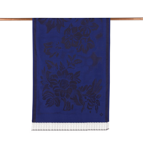 A reversible sapphire silk scarf detailed with our jacquard woven Nev Garden print throughout.