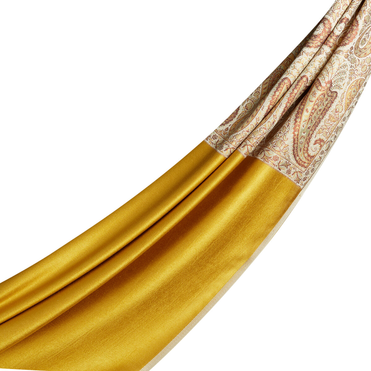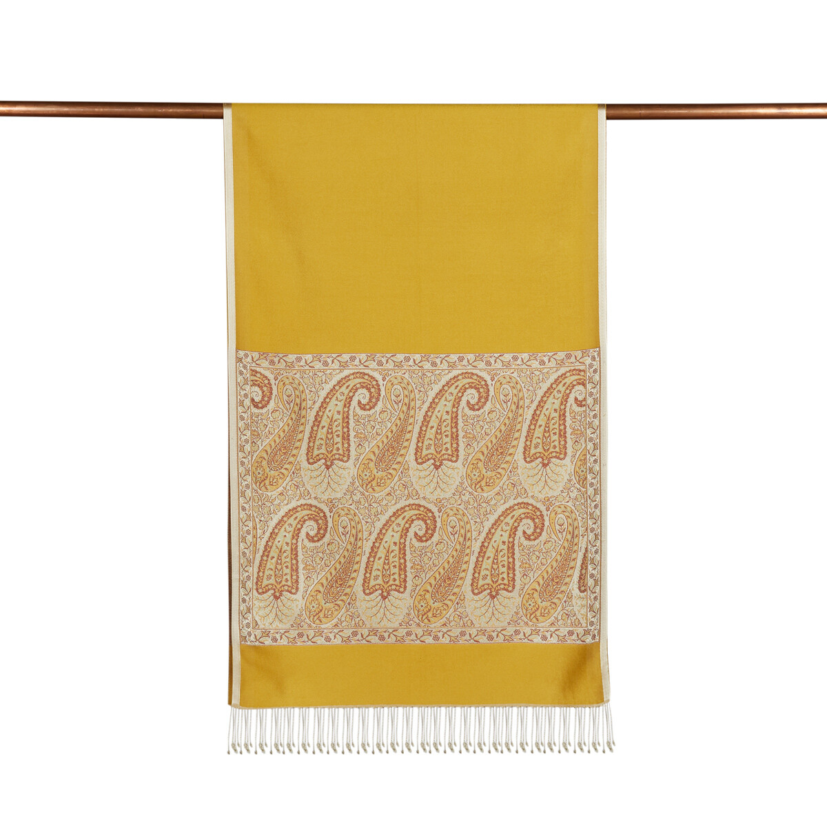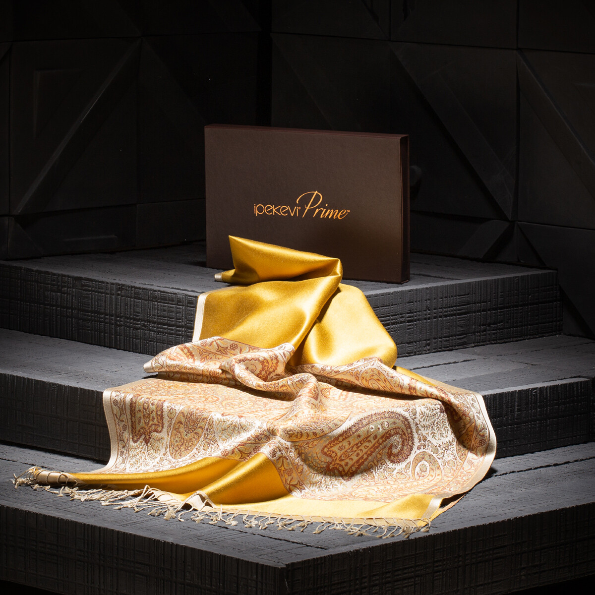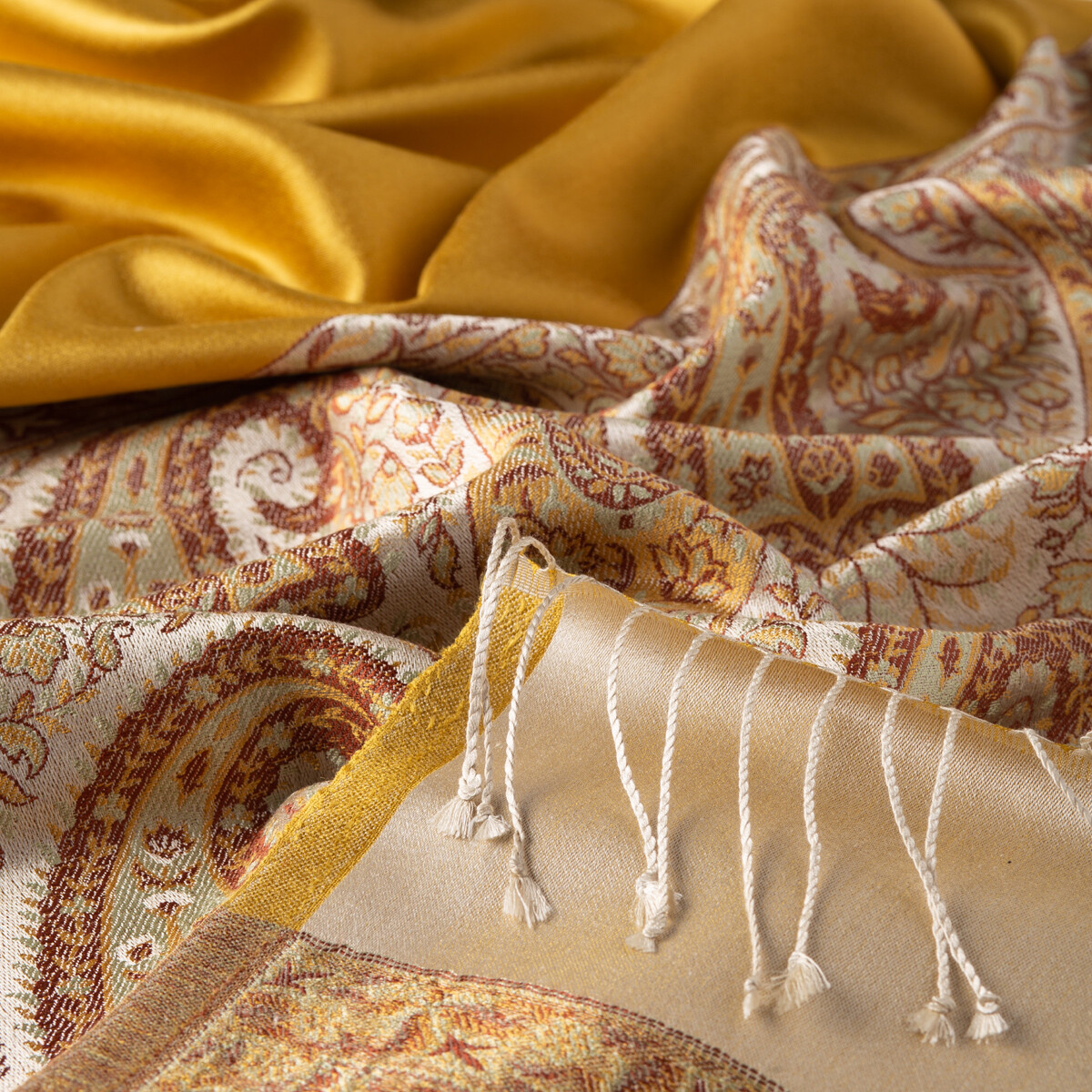 شال حرير جاكار فاخر منسوج يدويًا لون اصفر