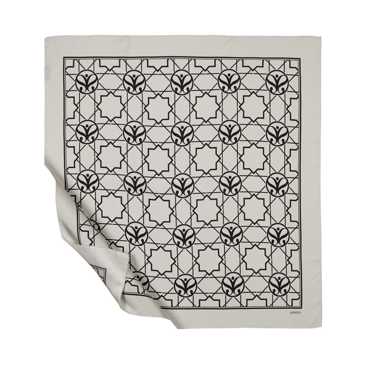 ايشارب حرير تويل لون فضي وأسود مونوغرام سلجوقي