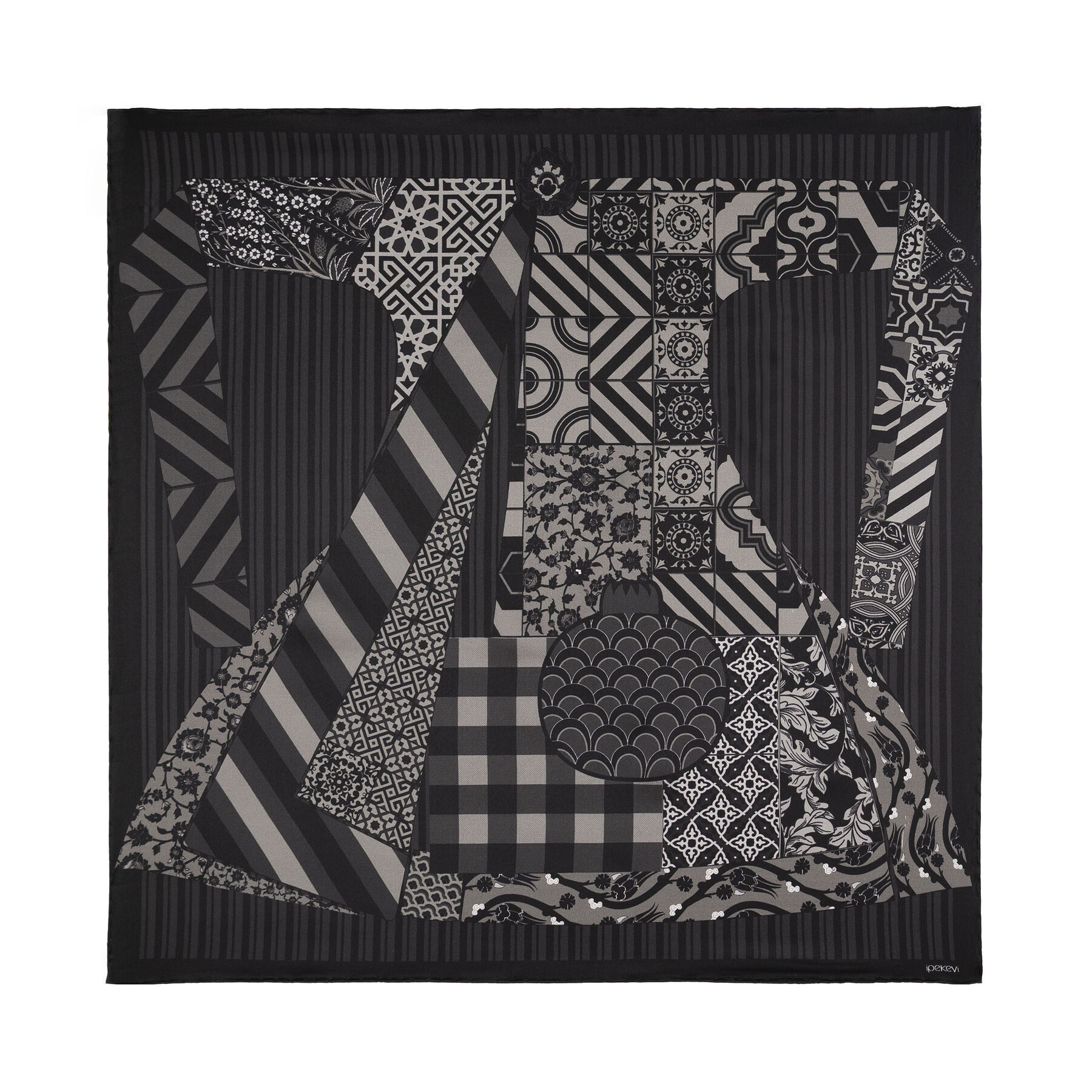 منديل حرير ساتان أسود بطبعة قفطان السلطان