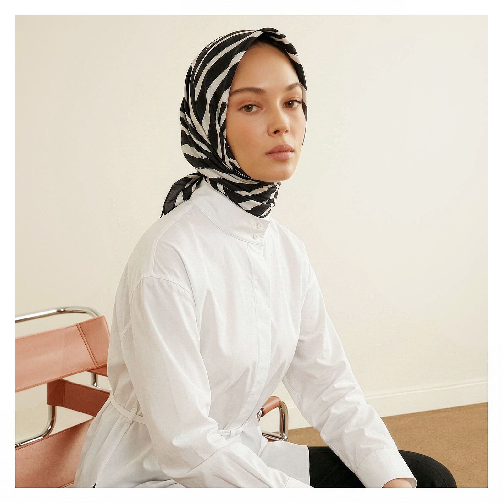 Kontrast uyumun klasik yüzü olan zebra desenleri modern şıklığın stil gücünü yükseltiyor.Doğadan ilham alan şık tasarımların aktarıldığı tivil ipek eşarplar tüm sezonları yeniden güncelliyor!%100 İpekArt Gallery Koleksiyonu90x90 cm
