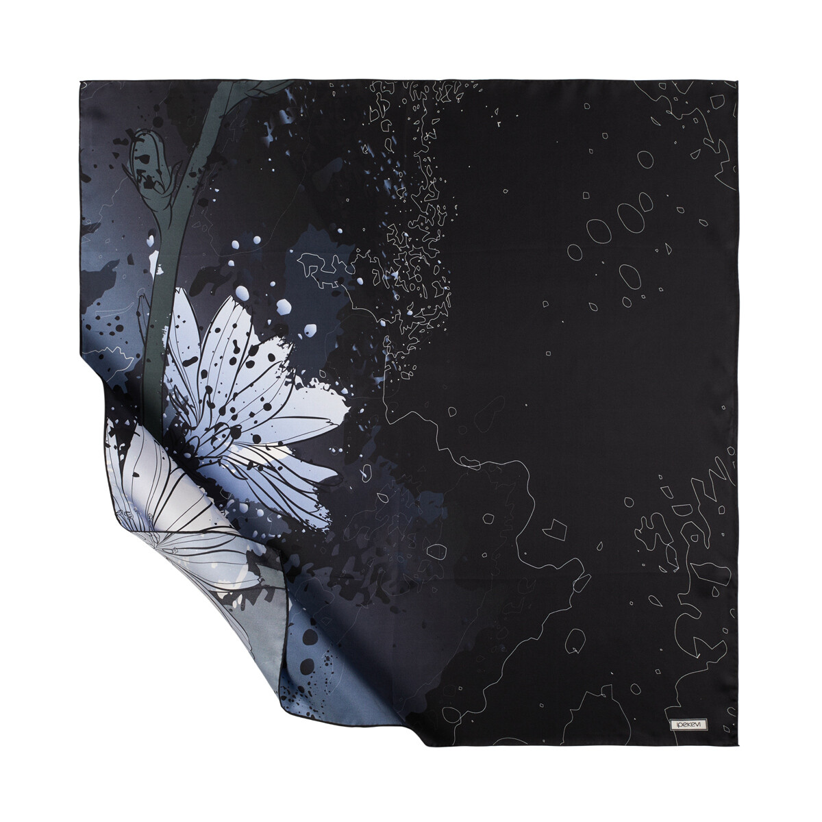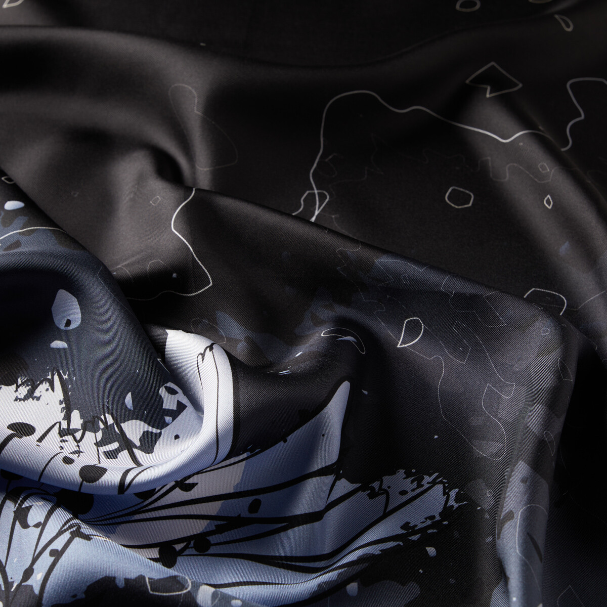 ايشارب حرير تويل تصميم ورود لون أسود ورمادي