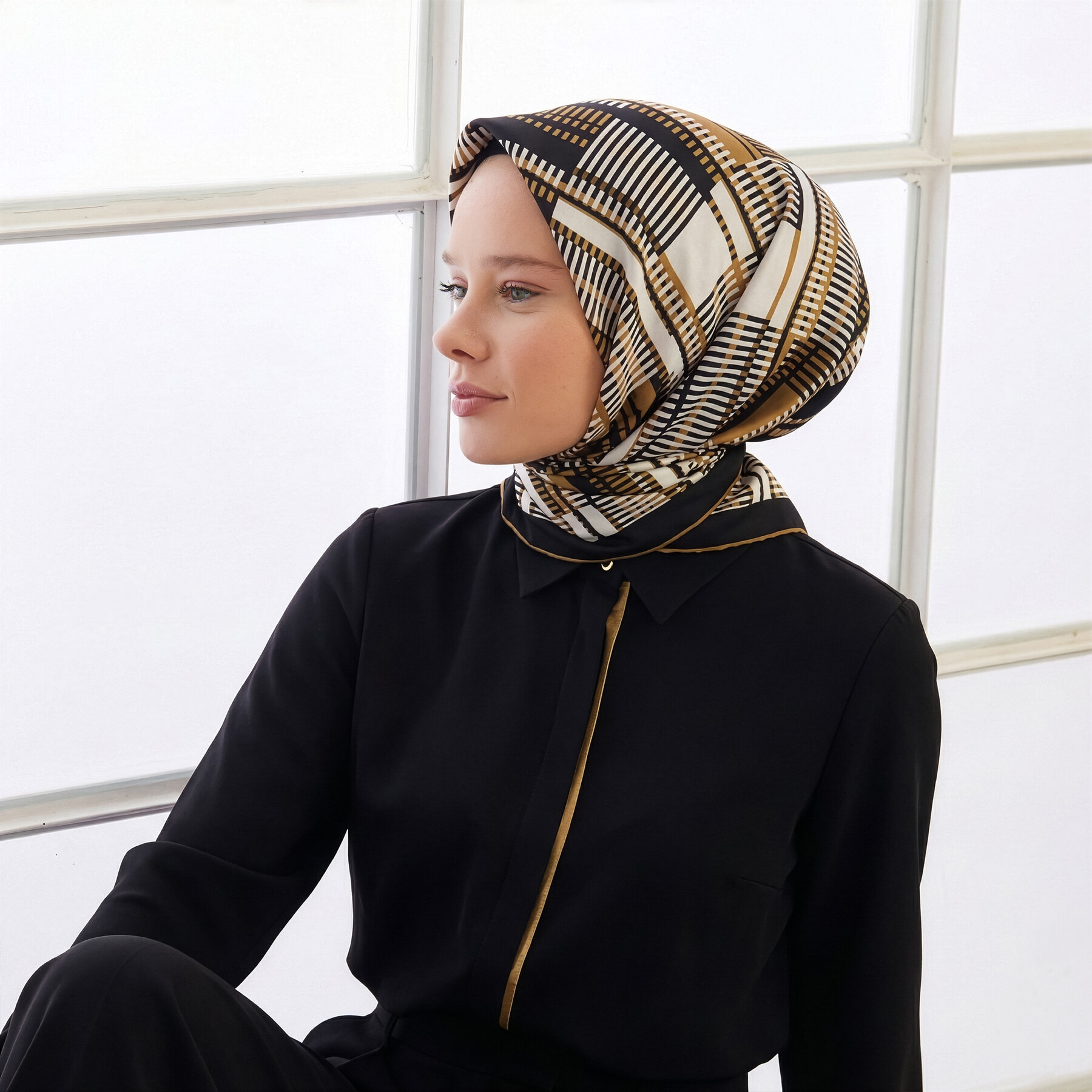 Siyah Gold Gökdelenler Tivil İpek Eşarp