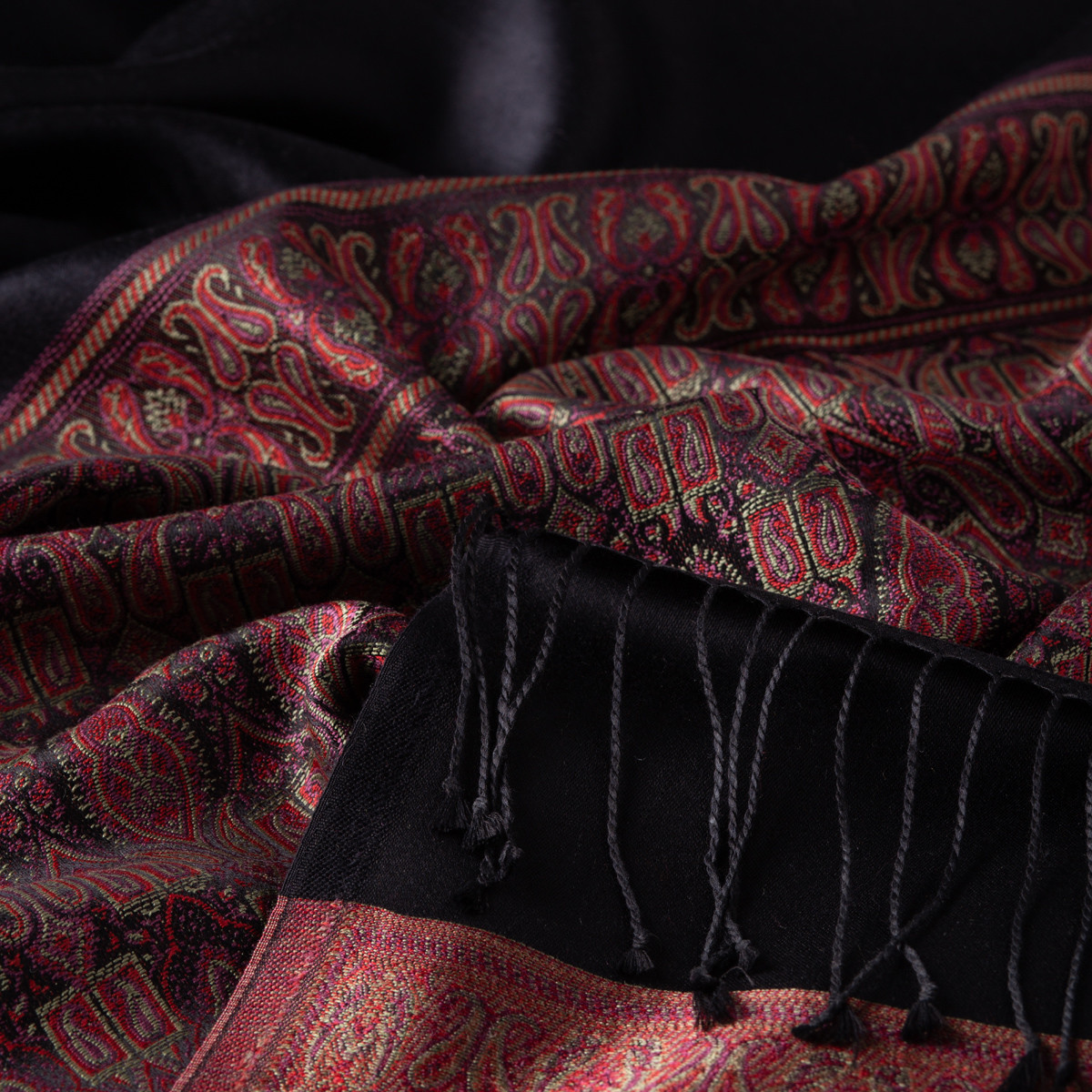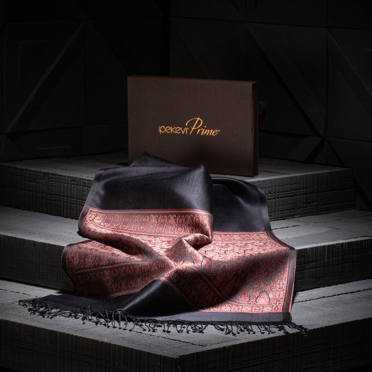 شال حرير جاكار فاخر منسوج يدويًا لون أسود