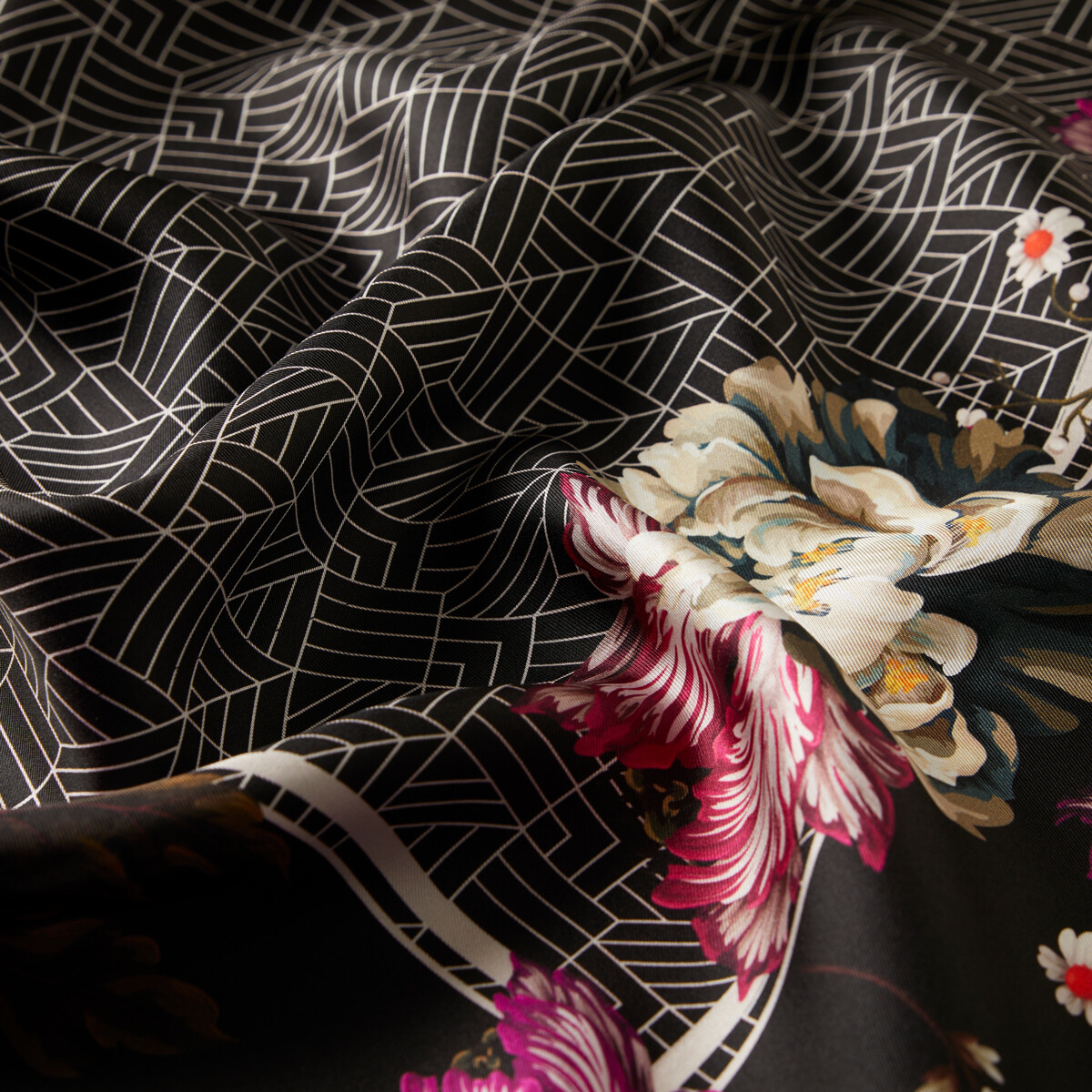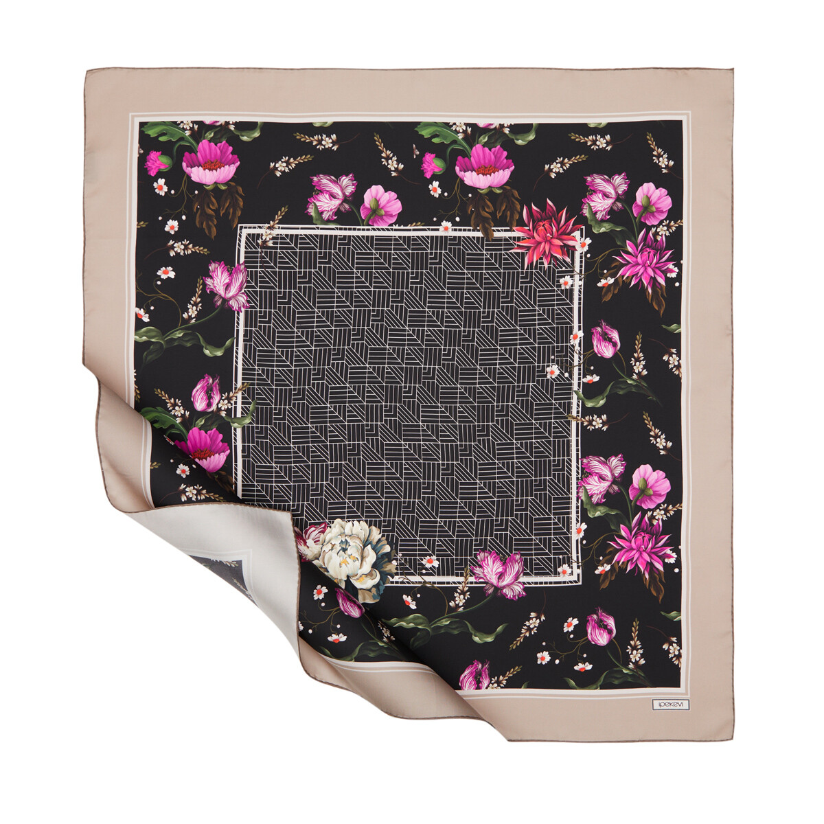 ايشارب حرير تويل تصميم ورود لون أسود وبيج