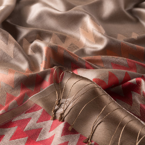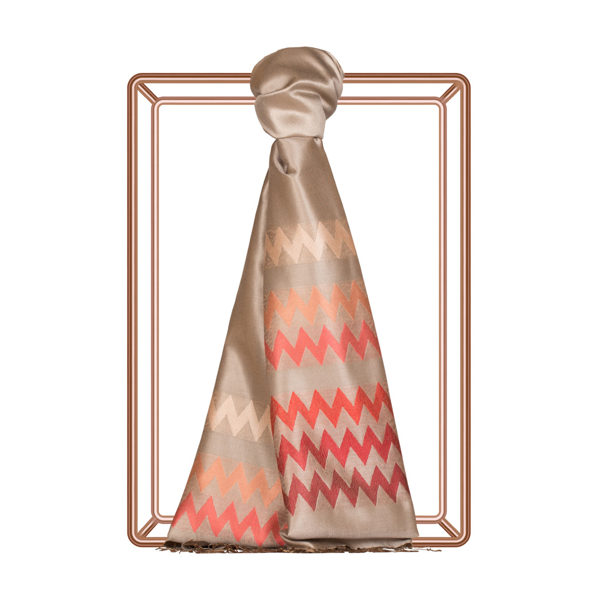 A reversible stone silk scarf featured with six zigzags in earth tones at both ends.