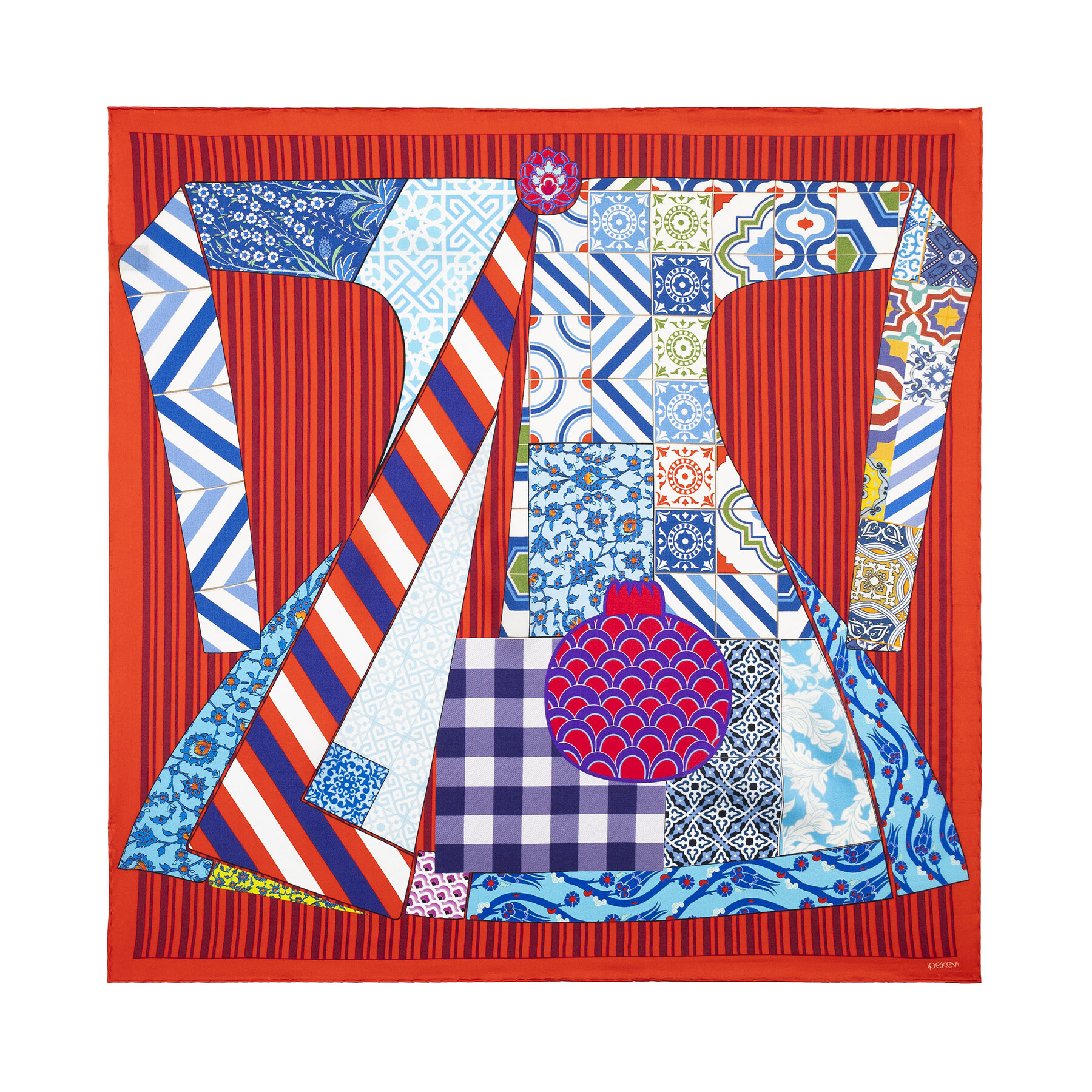 • A red pocket square in satin silk digitally printed with our colourful and detailed Sultan’s Caftan print.