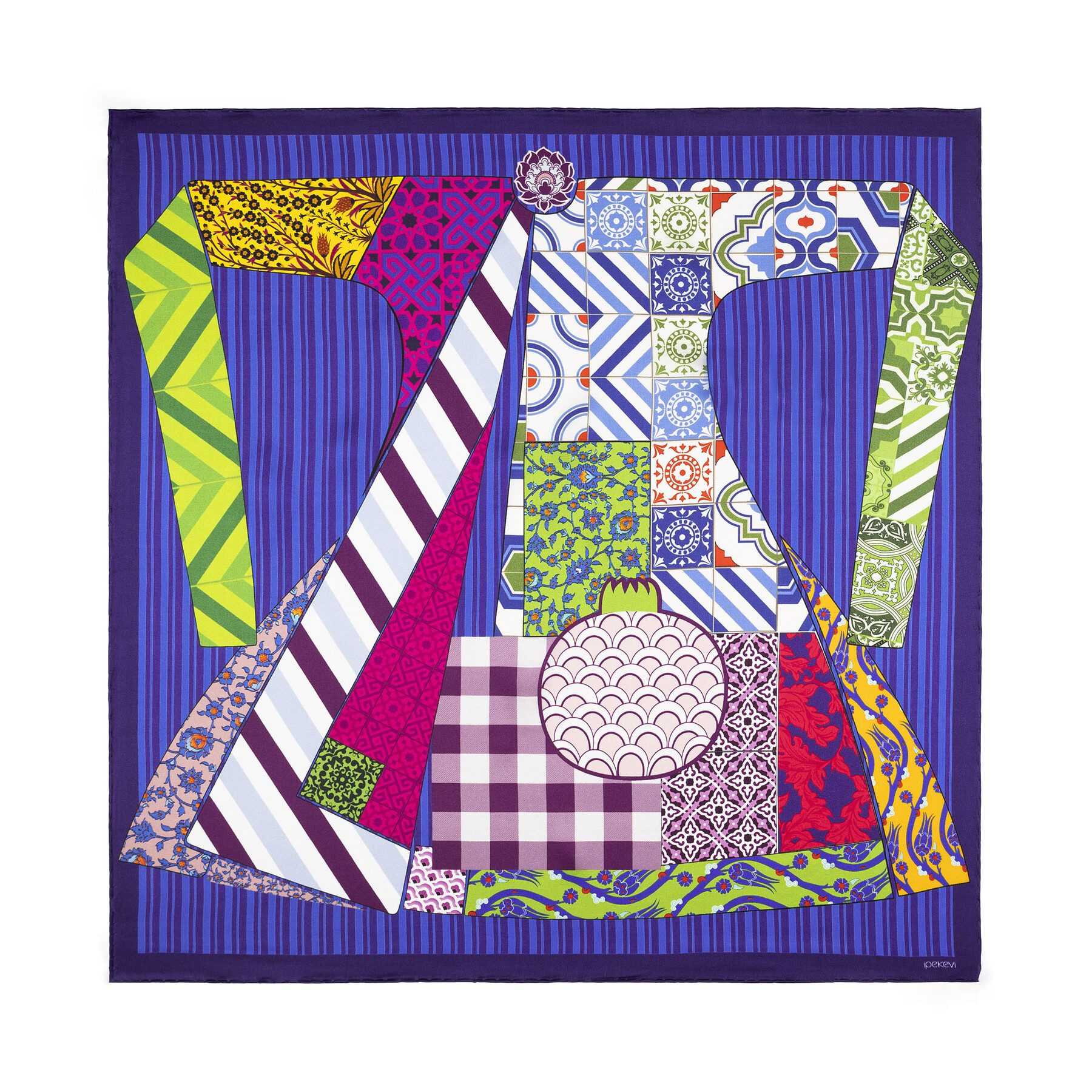 • A navy pocket square in satin silk digitally printed with our colourful and detailed Sultan’s Caftan print.
