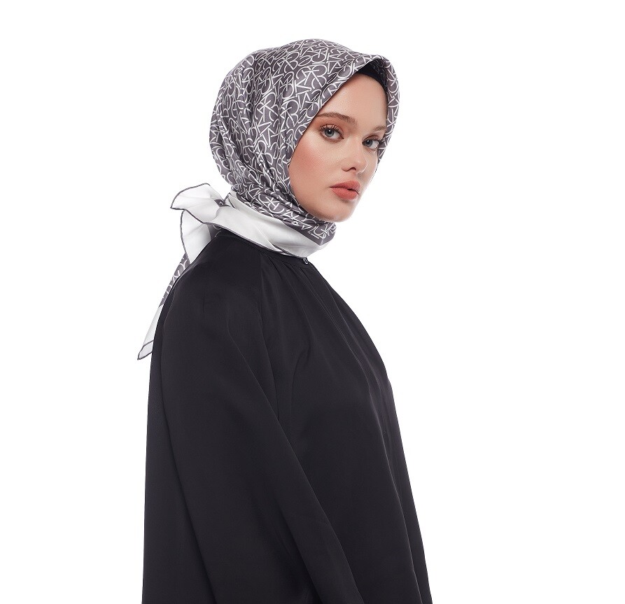 ايشارب حرير تويل التويل لون رمادي مونوغرام تايبو