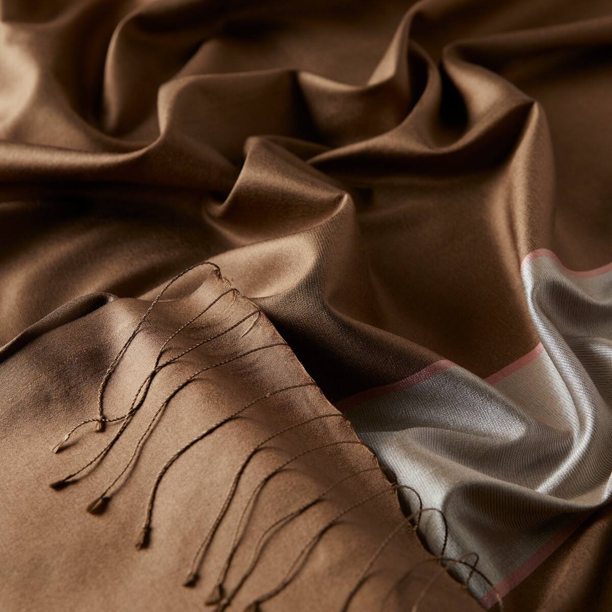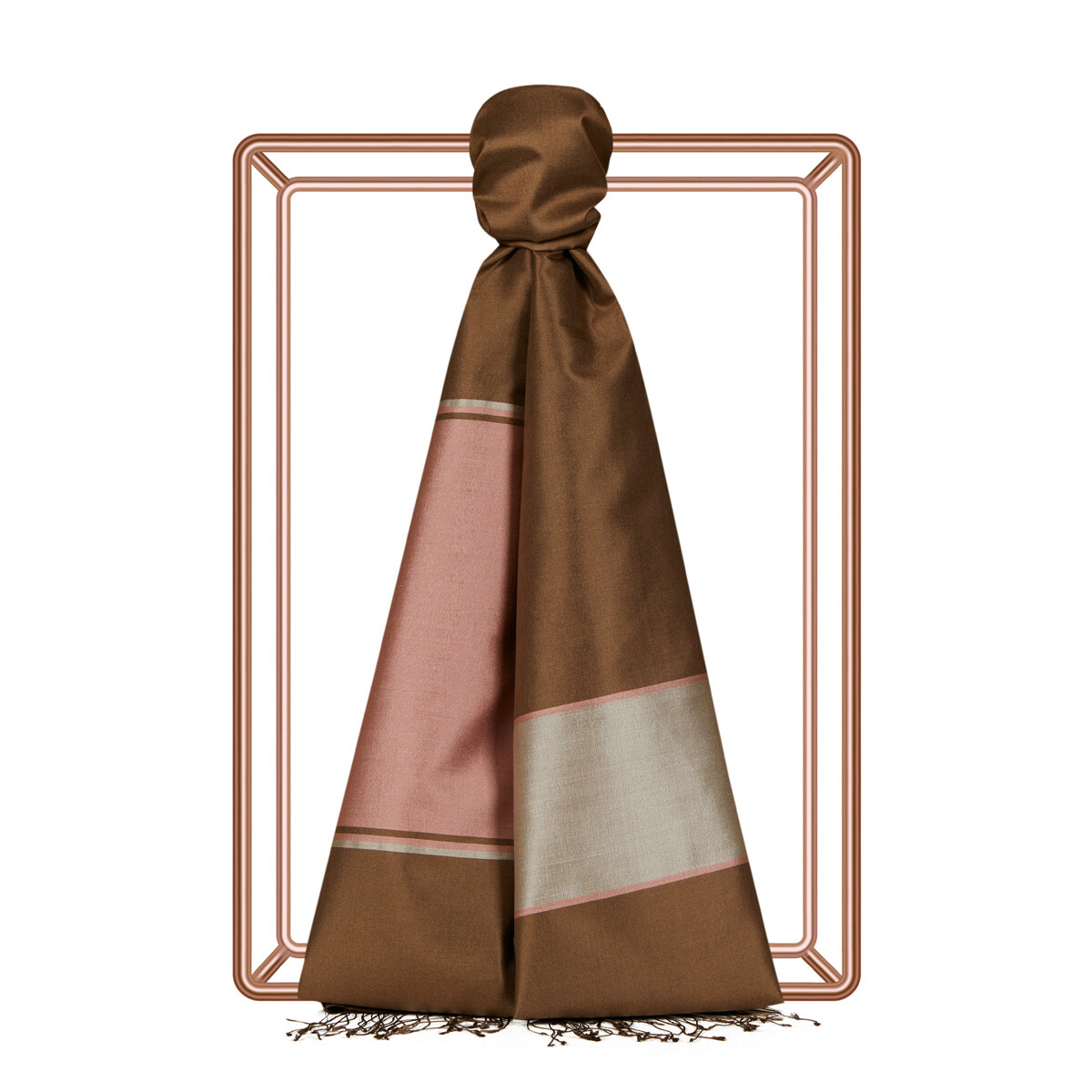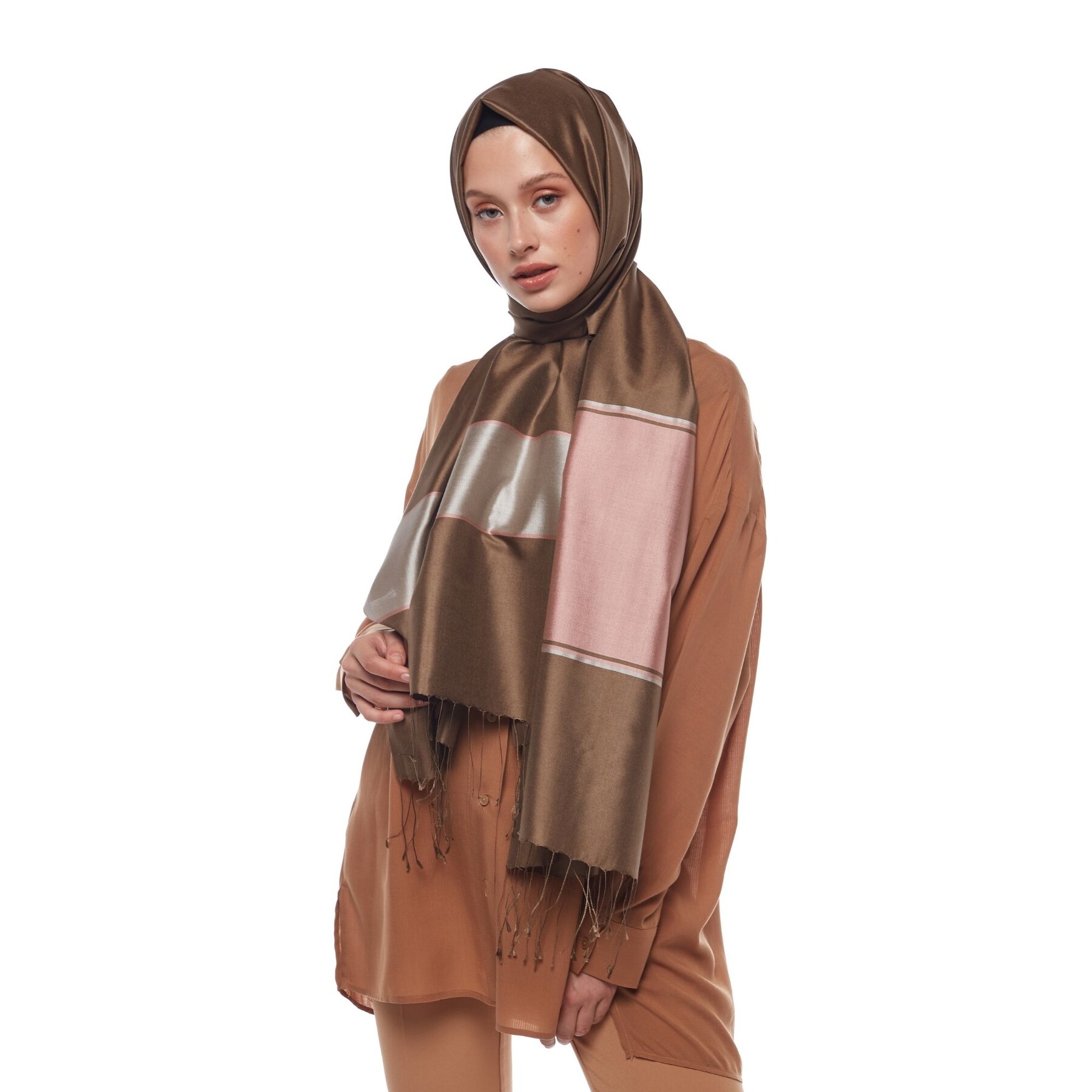 شال حرير مخطط لون ترابي