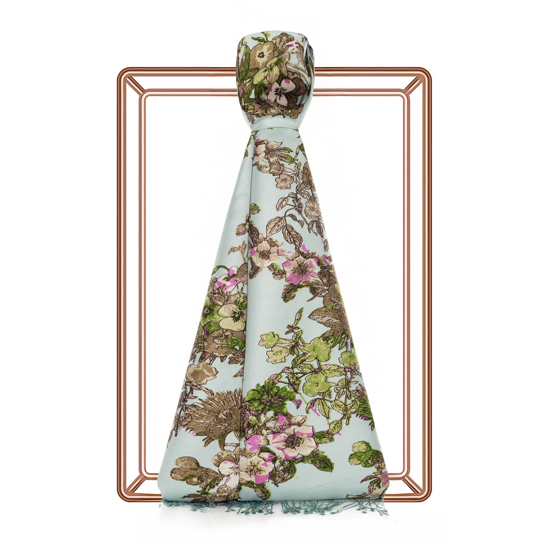 A water green silk scarf featured with our Exotic Amazon print throughout.