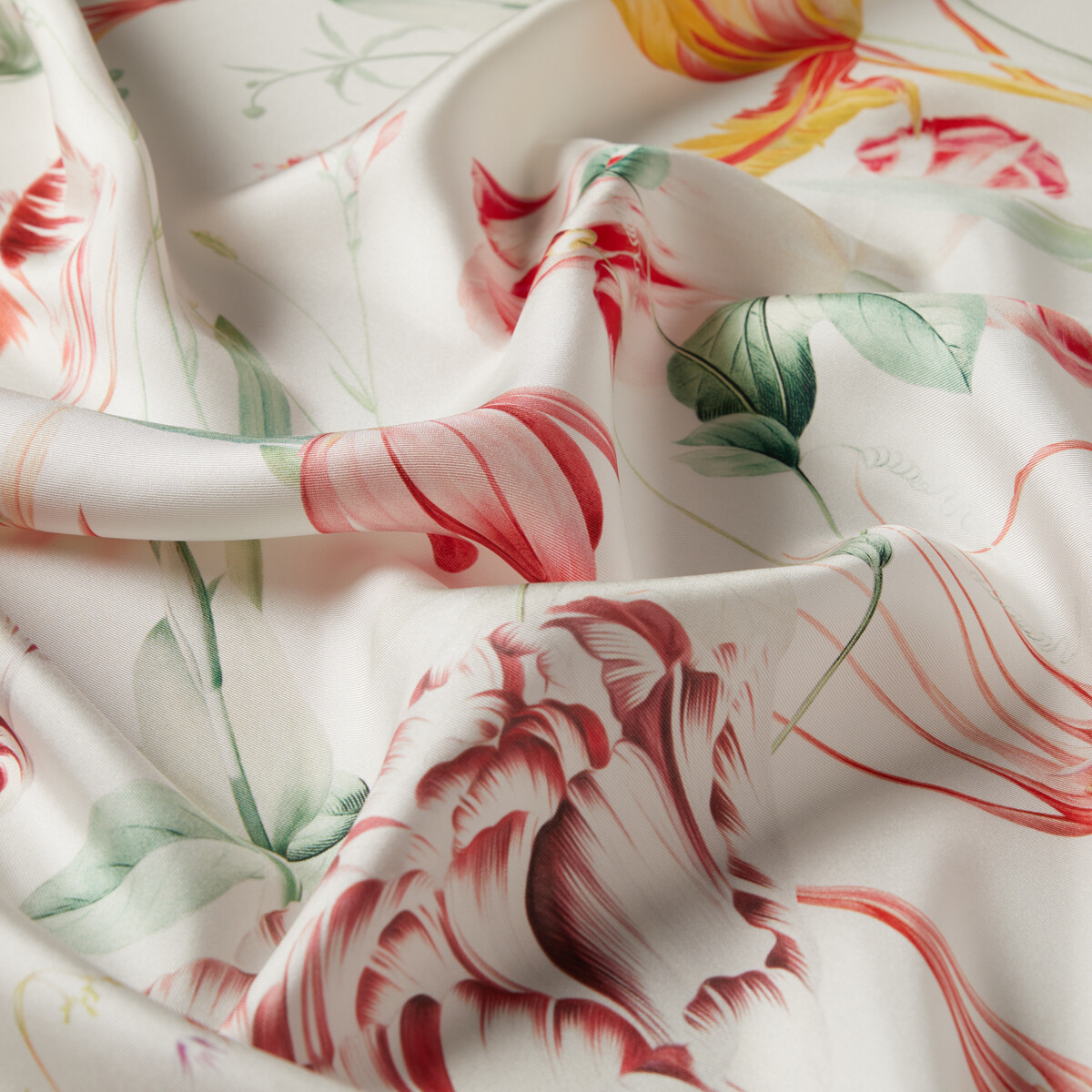 A white silk twill scarf featured with our dreamy Melancholia print throughout.