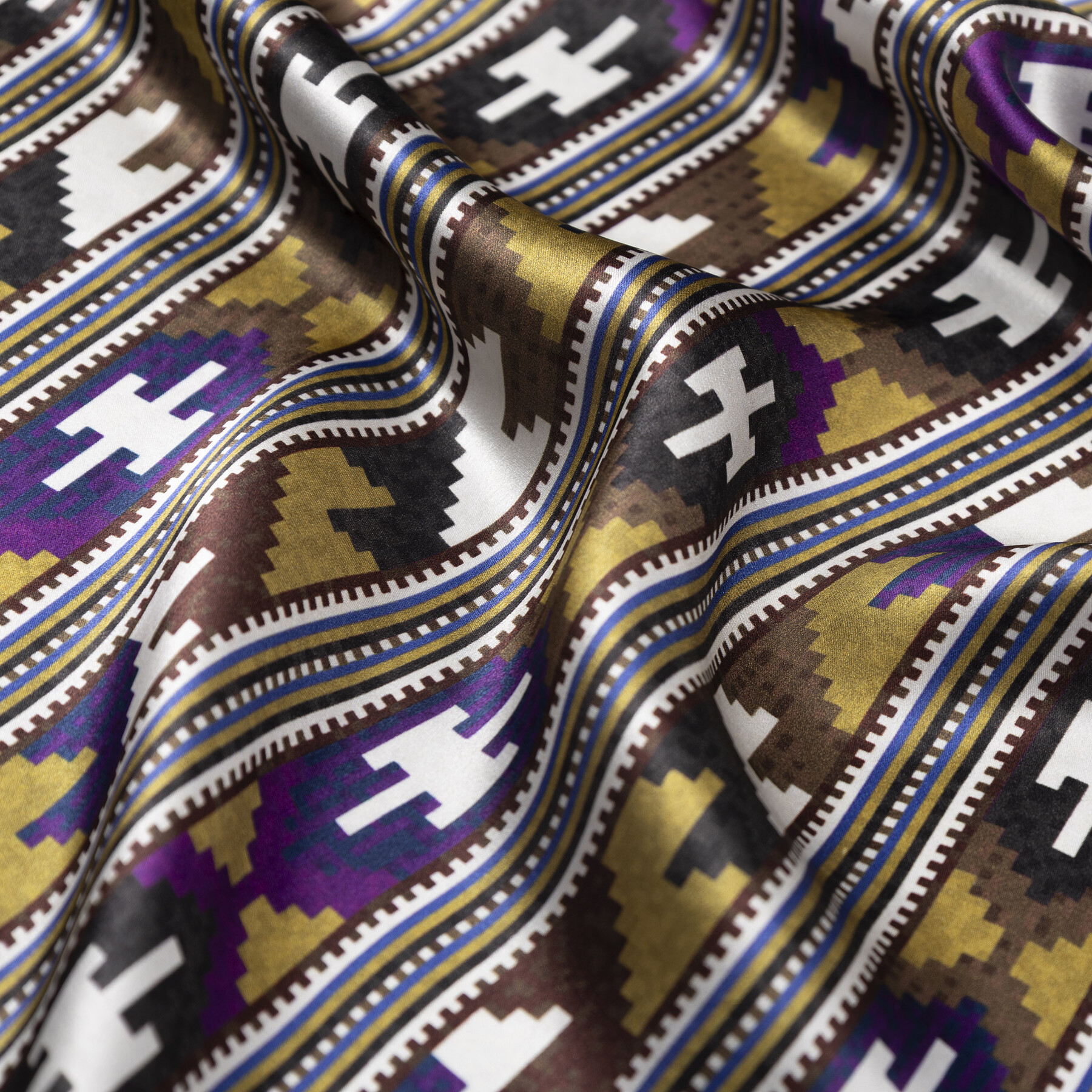 Anadolu giyim kültürünün en köklü unsurlarından biri olan kuşak, geçmişin anlam yüklü motiflerini zarif bir yorumla günümüze taşır. Birlik, düzen ve sürekliliği simgeleyen geleneksel kuşak desenleri, bu eşarp üzerinde tarihî bir kimlik ve estetik bir derinlik kazanır.