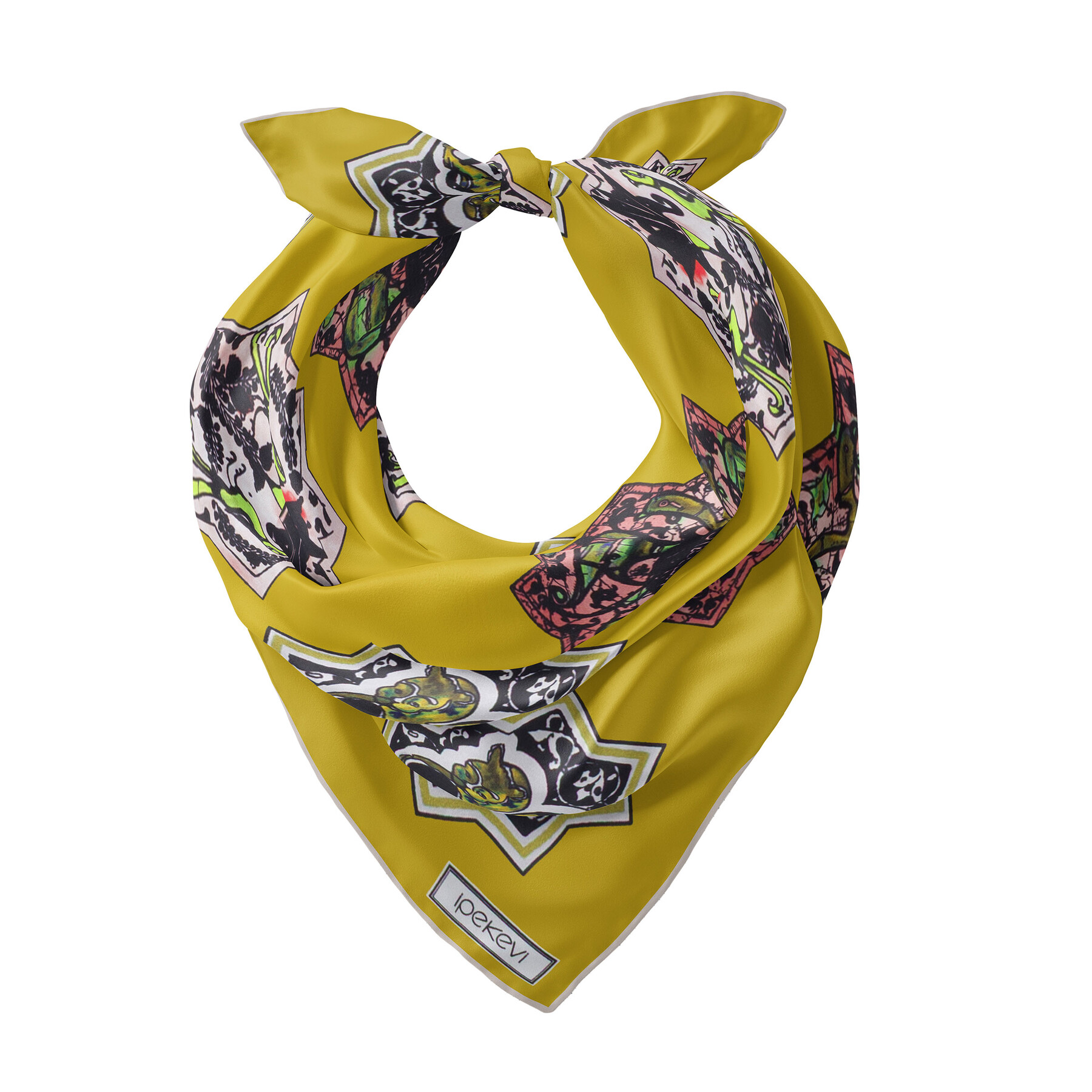 Yağ Yeşili Selçuklu Saten İpek Mendil