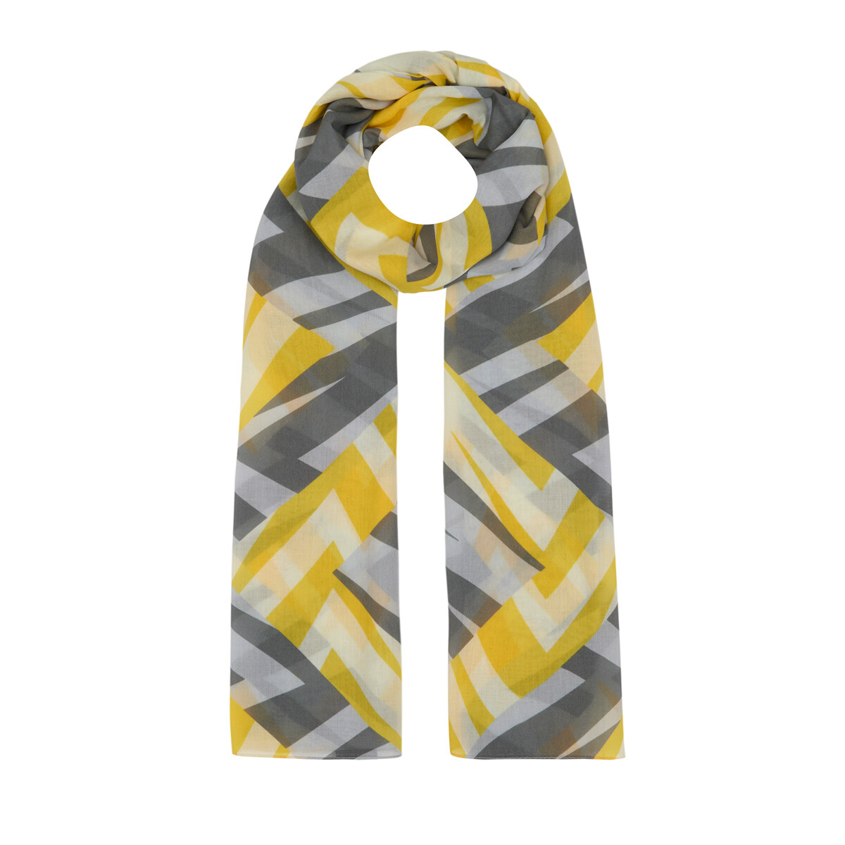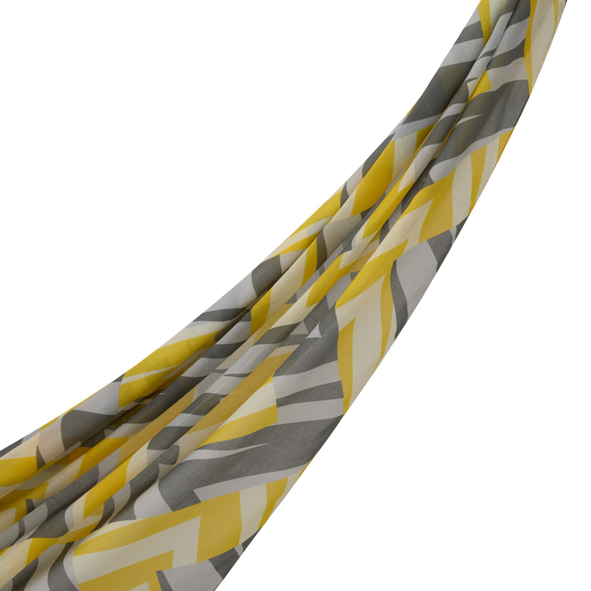 شال قطن تصميم هندسي لون أصفر ورمادي