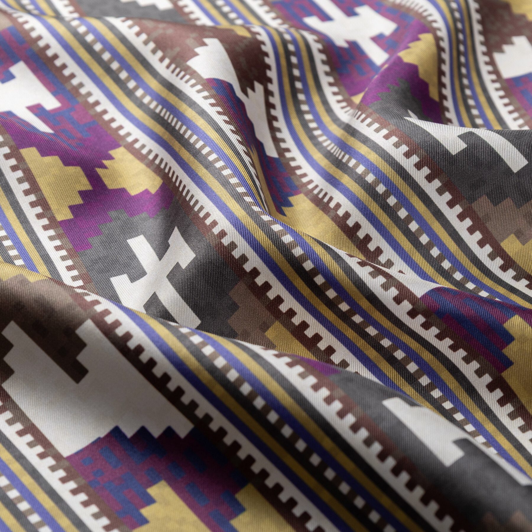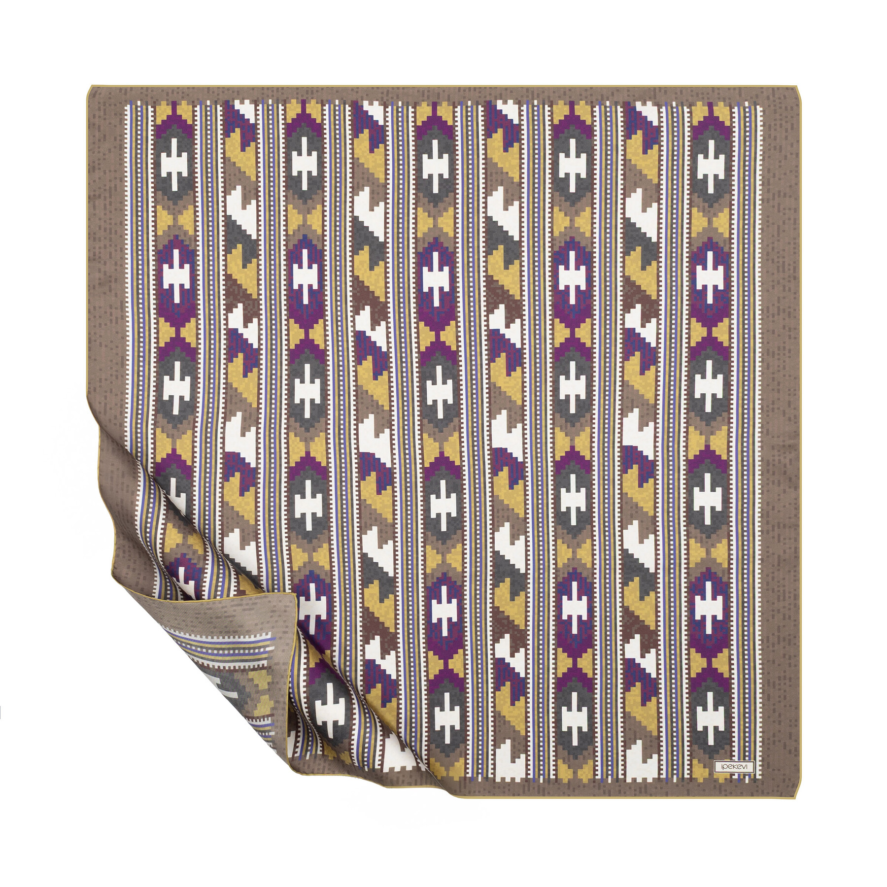 Anadolu giyim kültürünün en köklü unsurlarından biri olan kuşak, geçmişin anlam yüklü motiflerini zarif bir yorumla günümüze taşır. Birlik, düzen ve sürekliliği simgeleyen geleneksel kuşak desenleri, bu eşarp üzerinde tarihî bir kimlik ve estetik bir derinlik kazanır.